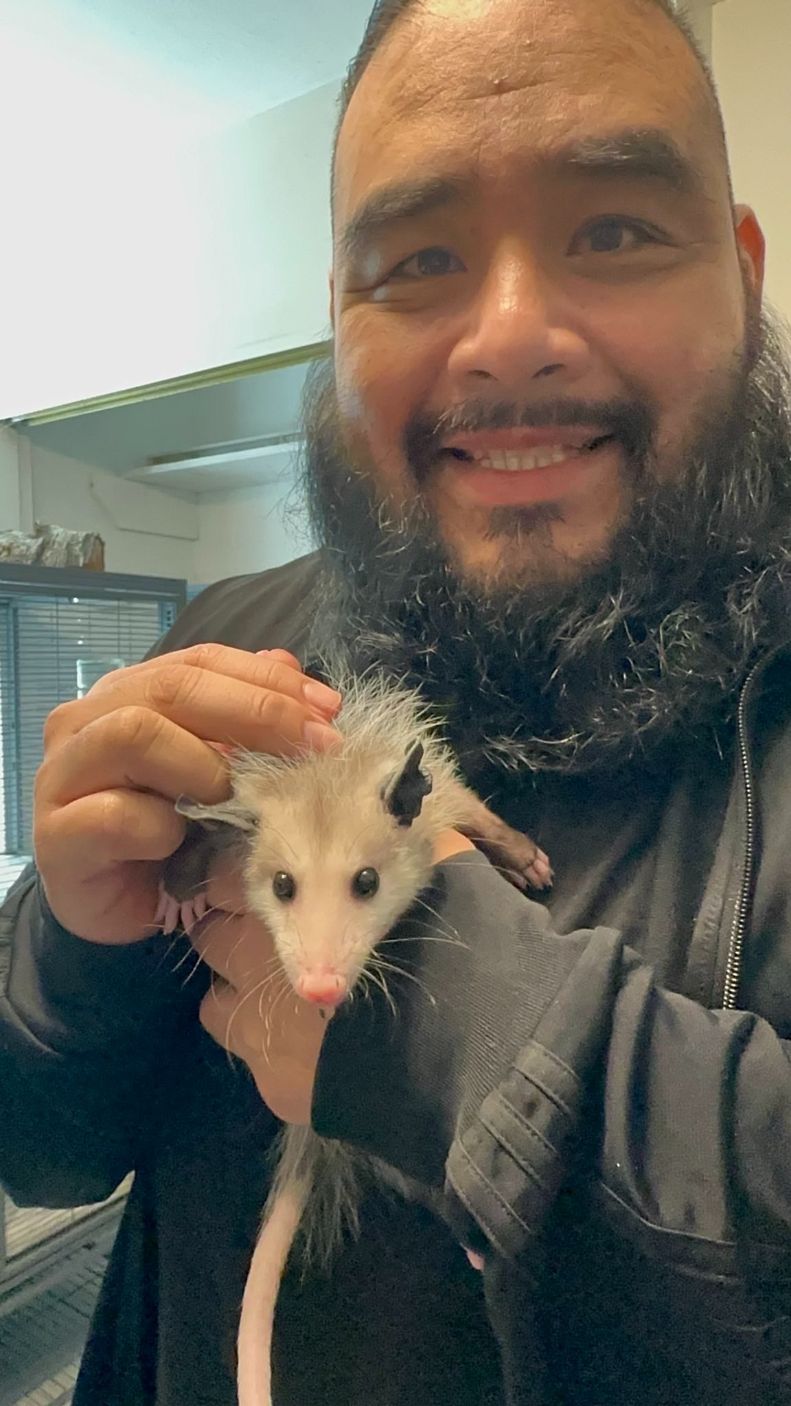 But Des isn’t just a victim of trumped-up political prosecution. He’s a beloved artist and friend who loves nothing more than experimenting with new vegan recipes, digging into new books, looking at baby opossums and sometimes fostering them, spitting out bars or writing poetry, and spending time with loved ones. As a longtime vegan dedicated to animal liberation, solidarity with nonhumans shows up in much of Desʼs artwork, including through his playful depictions of raccoons, cats, and other critters. Des extends this deep solidarity outward: heʼs a loving brother, son, and friend; he’s a free-spirited dreamer who takes good care of everyone and everything around him.