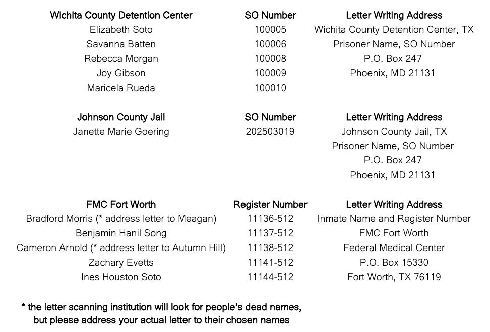 | * the letter scanning institution will look for people’s dead names, but please address your actual letter to their chosen names | ||